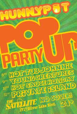 Hot Sauce Holiday is a four piece cabaret rock band from Los Angeles. Their live shows emphasize crowd participation and a great deal of improv. Bongo-solos, skits, poetry, and dance numbers have been known to break out. They have been known to feature burlesque dancers, hula hoop artists, and scandalous routines involving Playboy playmates. Genre-wise the sound varies from song to song drawing influence from 60's psychedelic and folk, to early punk, 80's electro, disco, and even a bit of barbershop. The song lyrics are surreal and rely more on wit than vulgarity. Every band member trades off on vocals or sings in harmonies. In addition to over 20 originals the band has a variety of party cover songs they are able to play ranging from George Michaels to Motorhead. The band goes over with a variety of age groups and has won over even the most cynical critics. They've opened for metal bands, comedians, singer-songwriters, and electronic acts.